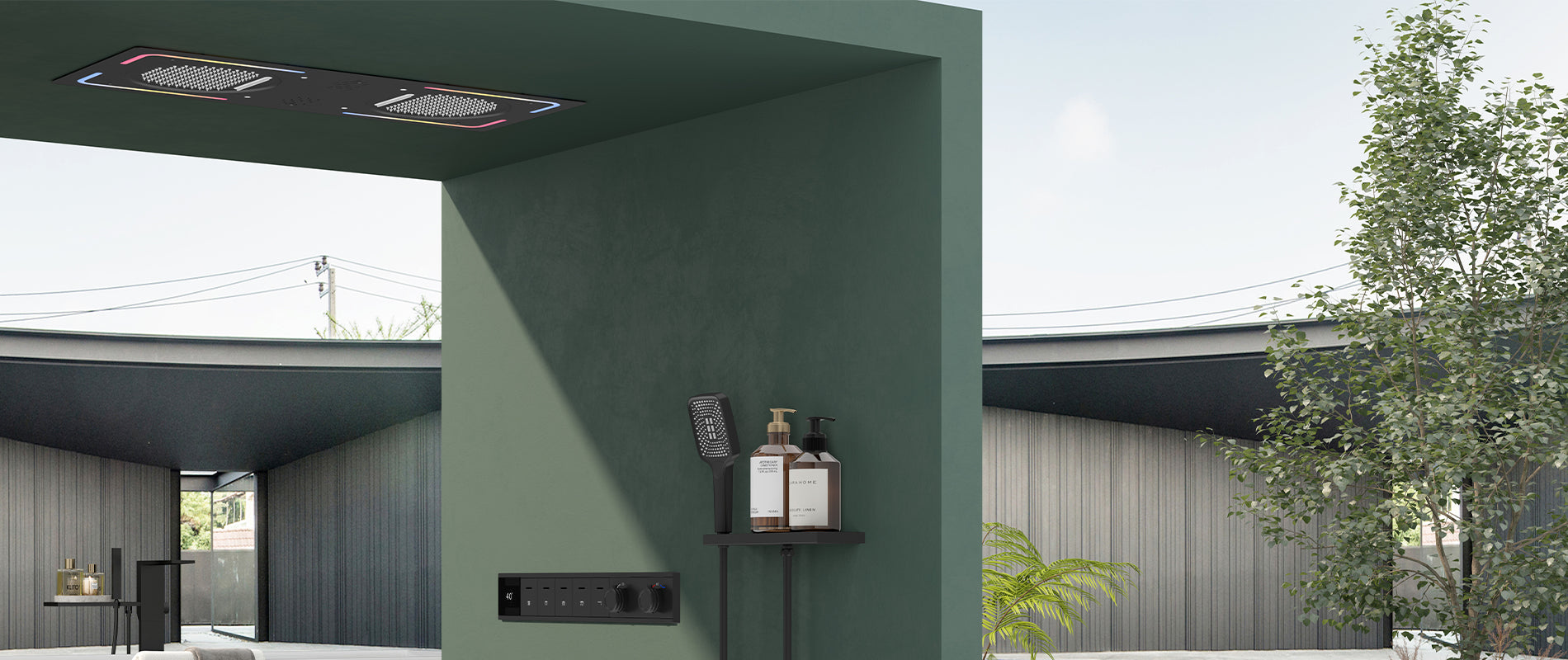 • MAXTOR Exposed Bathtub Mixer Faucet with Integrated Shelf & Piano-Key Diverter-AB022065